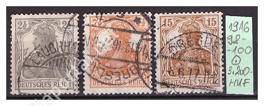 1916. DEUTSCHES REICH, Mi 98-100 -o- komplett sor, katalógusára 3.200 Ft