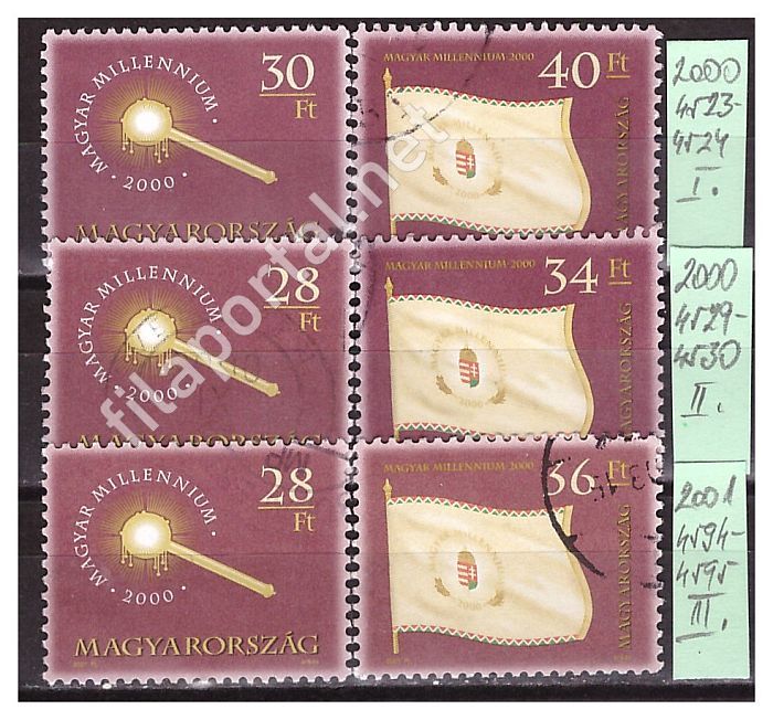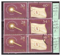 2000. MAGYAR MILLENNIUM I.-II.-III. sorok 4523-24,4529-30, 4594-95 -o- azonos b. képek, más dátumok