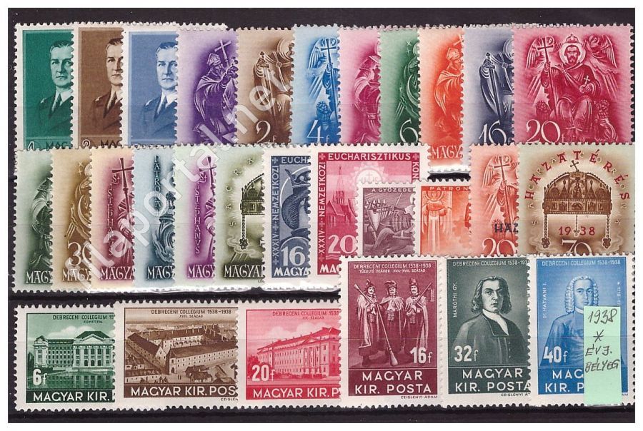 1938. KOMPLETT ÉVJÁRAT, * kis falc, berakólapon, blokk nélkül (kat.ára **14.000Ft *7.000Ft)