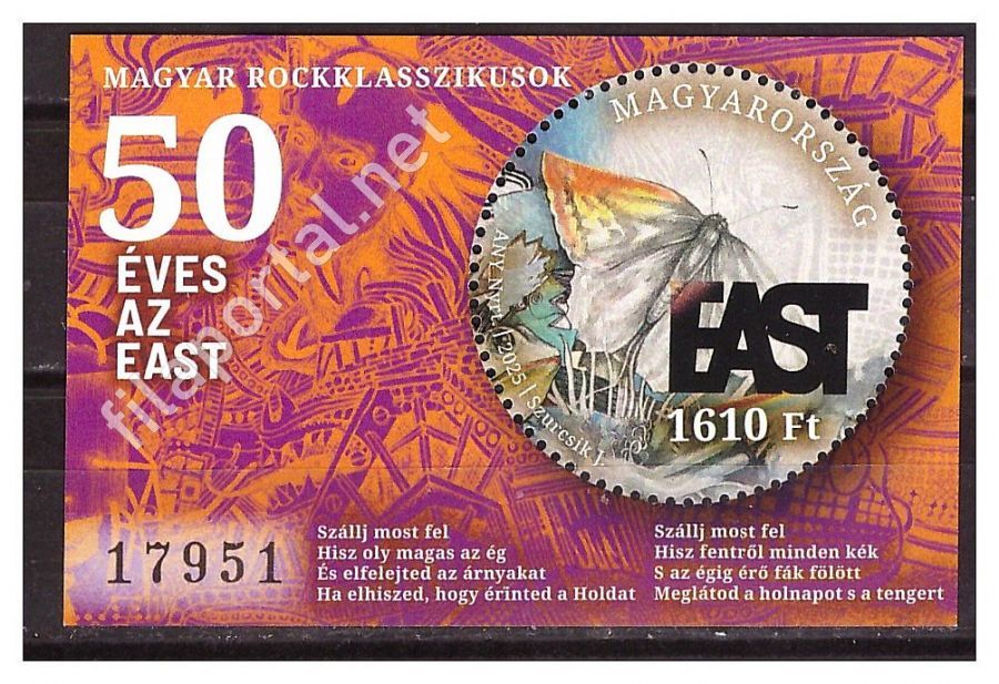 2025. MAGYAR ROCK KLASSZIKUSOK - blokk, 50 éves az EAST együttes ** fekete s.sz