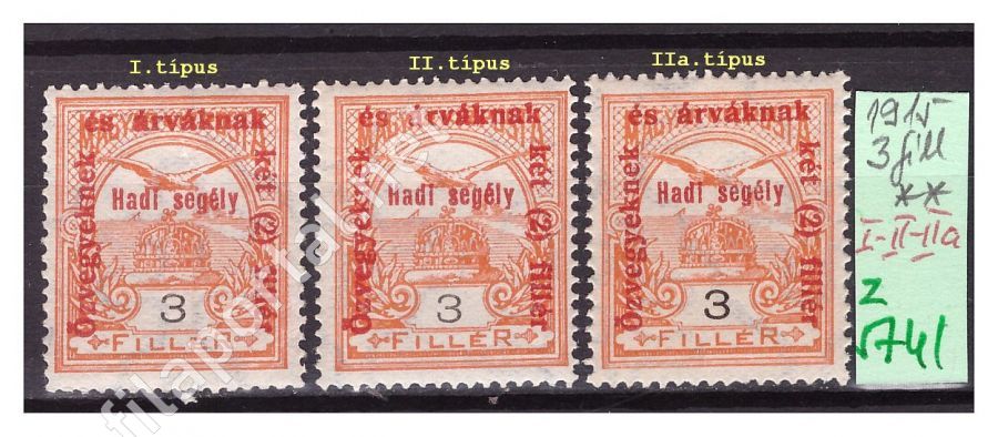 Kiváló példányok, I-II-IIa típusú bélyegek, postatiszta szép tétel. ( I.típus gyakori, II. típus ritkább, és a IIa. típus a legritkább)