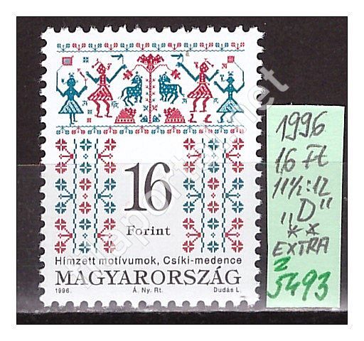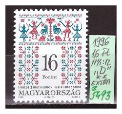 1996. MAGYAR NÉPMŰVÉSZET IV., 16 Ft, 4347 sz., "D" típus, fél-fényes - vonalas /skót papíron** (zz5493)