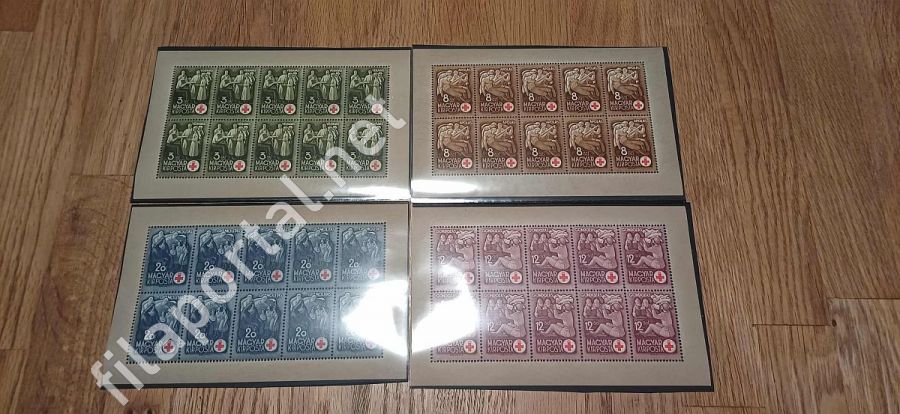 1942. VÖRÖSKERESZT I. teljes ívek sorozata ** 724-27 kat.ára 25.000 Ft, luxus állapot! (A5/ab724/) Filázott tétel!