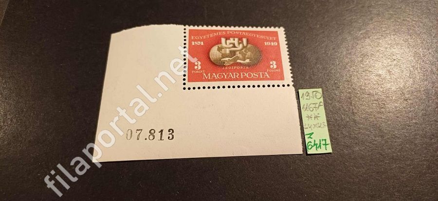 1950. UPU (I.) - BLOKK-ból ** 1167A, ívsarki , bal alsó ívsarki, sorszámmal, luxus minőség (z6417f)