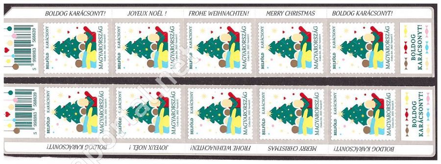 2025. KARÁCSONY - BELFÖLD - teljes ívből bal vagy jobboldali függőleges 5 ös csík, vonalkóddal, alul és oldalt feliratokkal**