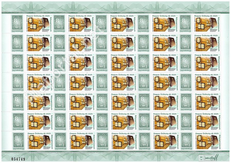 2025. MAGYAR ÖRÖKSÉG díj, promóciós 35-ös bélyegív ** BELFÖLD. a Magyar Posta kiadványa