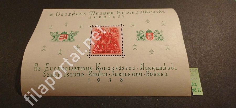 1938. ORBÉK - BLOKK ** (sz38.2) katalógusára 8.000 Ft /két kép/ berakólapon