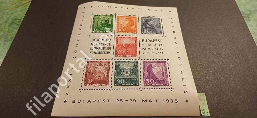 1938. EUCHARISZTIKUS - BLOKK ** (sz38.3) katalógusára 10.000 Ft /két kép/ berakólapon