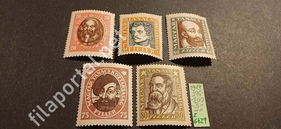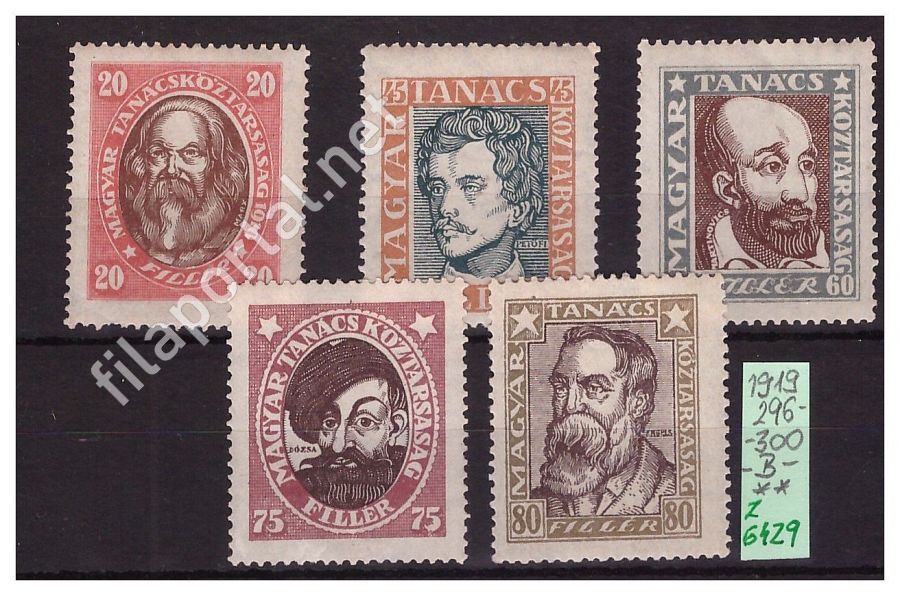 1919. MAGYAR TANÁCSKÖZTÁRSASÁGI ARCKÉPEK -B- SOROZAT** 296-300 (z6429f) extra tétel, berakólapon, kat.ára 6.000 Ft / 3 kép /