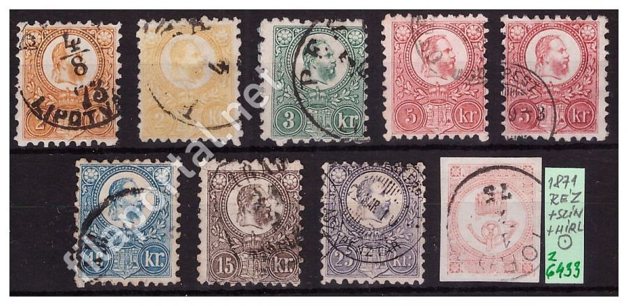 1874. SZÍNESSZÁMÚ krajcáros -A- sorozat+hírlap