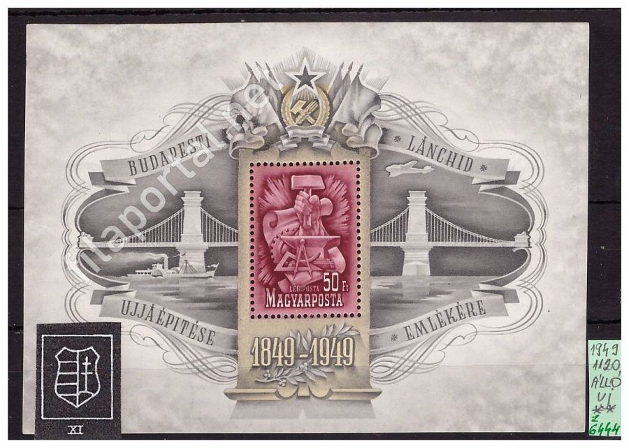 1949. LÁNCHÍD III. BLOKK** A NAGY LÁNCHÍD 1120, álló vízjellel, katalógusára 210.000 Ft (z6444f) /két kép/