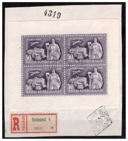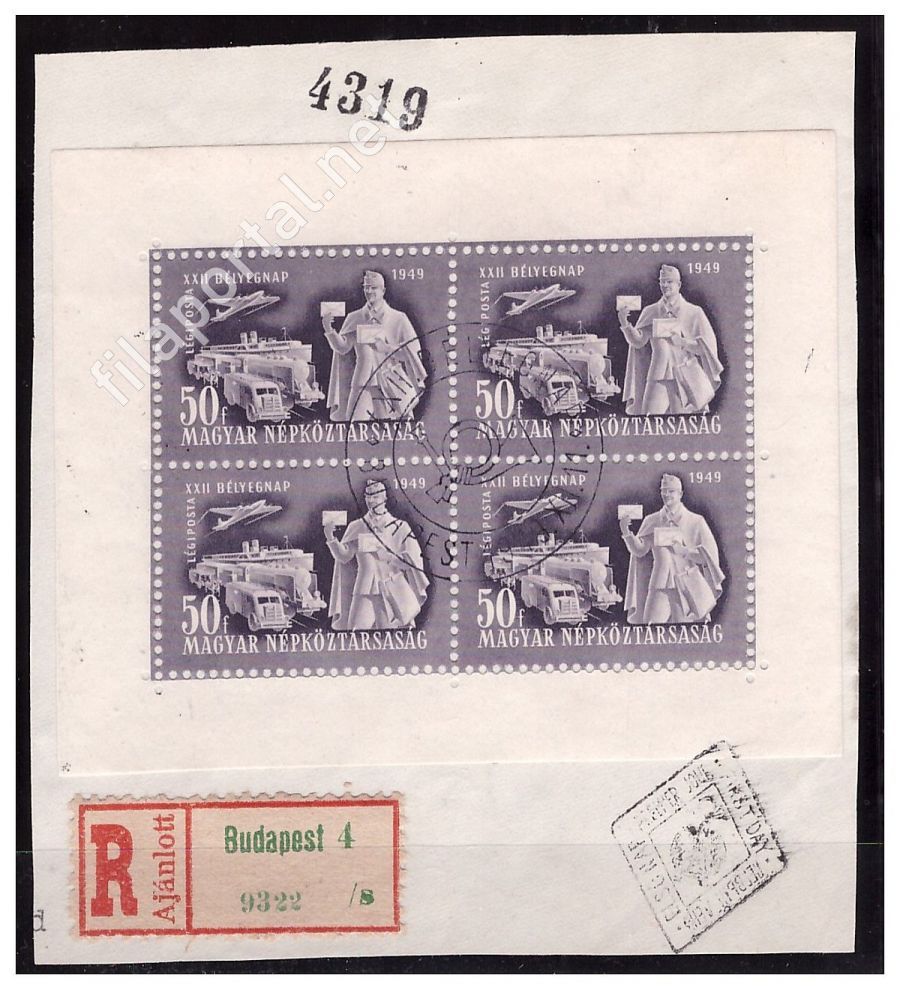 1949 BÉLYEGNAP (22.) 1121 -o- elsőnapi kisív (Ajánlott-sorszámmal kivágás) szép tétel (pbl)