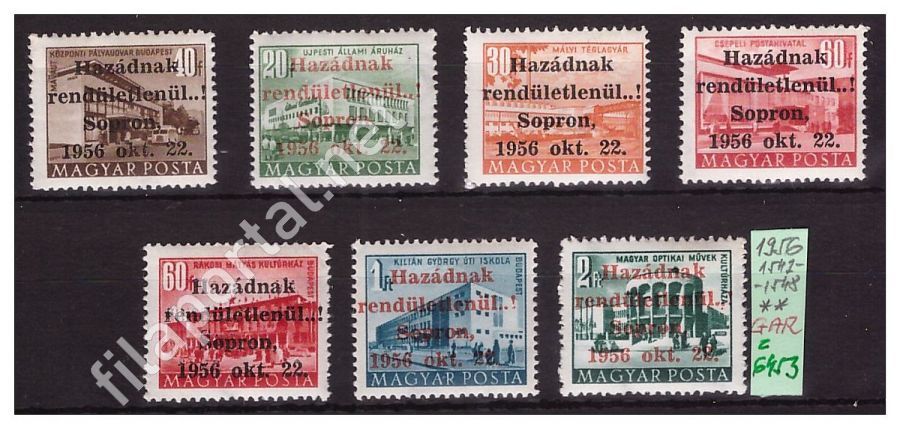 1956. SOPRONI felülnyomás - 7.é., sorozat 1542-1548 ** (z6453f) luxus, gar. bgz., kat.á: 14.000 Ft, berakólapon