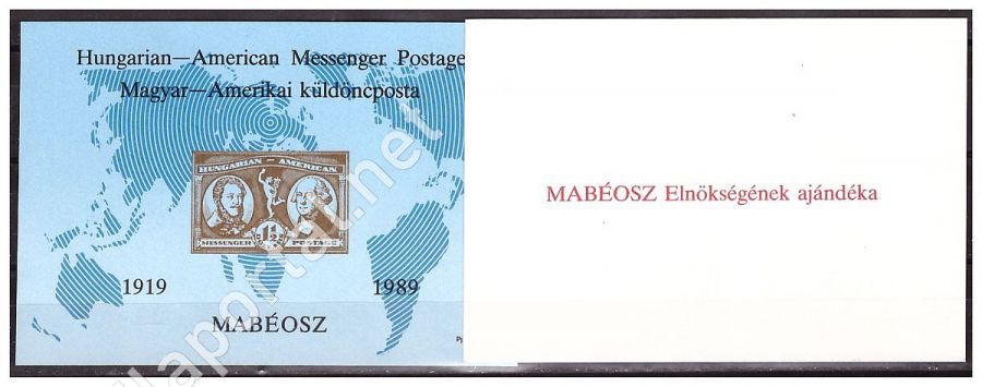 1989. MESSENGER - MAGYAR - AMERIKAI FUTÁRPOSTA - EMLÉKÍV, VASTAG PAPÍRON- hátoldali piros felirat A MEBÉOSZ ELNÖKSÉG AJÁNDÉKA