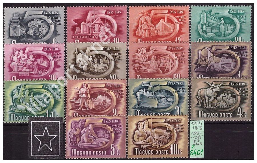 1951/53. ÖTÉVES TERV II. SOR, ** 1272-85 luxus, kat.ára 25.000 Ft (z6461f) berakólapon, csillag vj. (kis tny. különlegességgel)