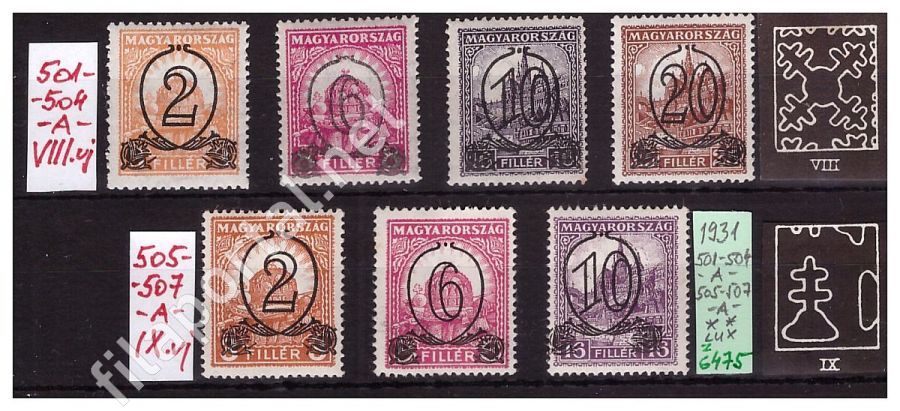 1931. KISEGÍTŐ BÉLYEGEK -A- sorok, 501-504 és 505-507 ** luxus tétel (z6475.2f) katalógusára 10.500Ft