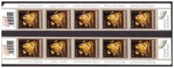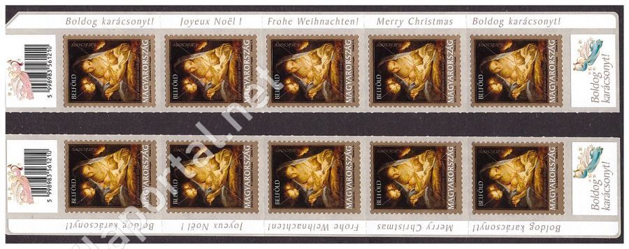 Bal vagy jobboldali teljes 5 ös csík, felül vonalkóddal, alul BOLDOG KARÁCSONY felirattal, az ívszélen 4 nyelvű feliratokkal. Kiváló hajtatlan példányok. Az ajánlat tárgya 1 db csík, a készlet szerint küldjük bal vagy jobboldali kivitelben.