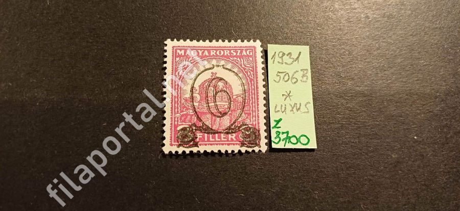 1931. KISEGÍTŐ BÉLYEG * 506 -B-, pici falc, eredeti gumi, ritka, kat.ára 20.000/10.000.-Ft, 14-es f.(z2963) két kép.