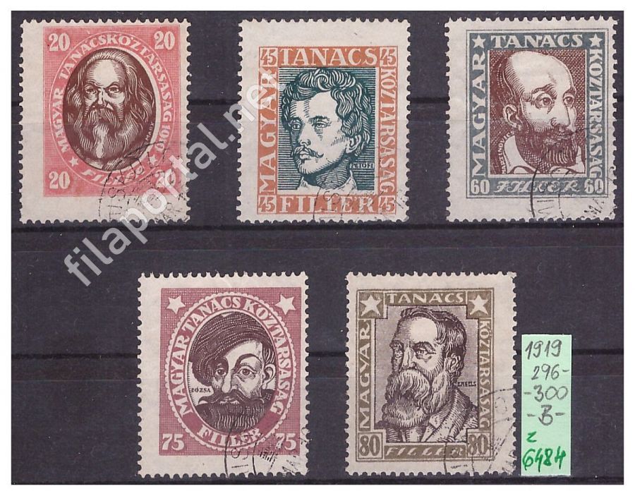 1919. MAGYAR TANÁCSKÖZTÁRSASÁGI ARCKÉPEK -B- SOROZAT, 296-300 -o- (z6484f) elfogazott,szép, katalógusára 6.000 Ft, berakólapon