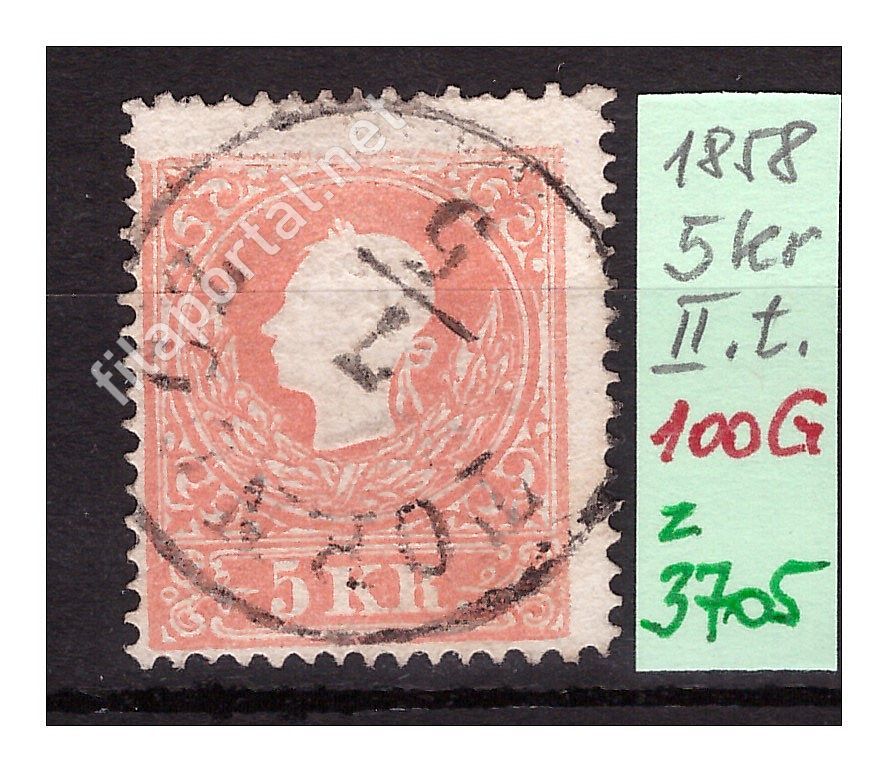 1858. KÖNYVNYOMAT DOMBORNYOMÁSSAL 5 kr., II. típus, TORNOCZ /100G.p/ (z3705) szép