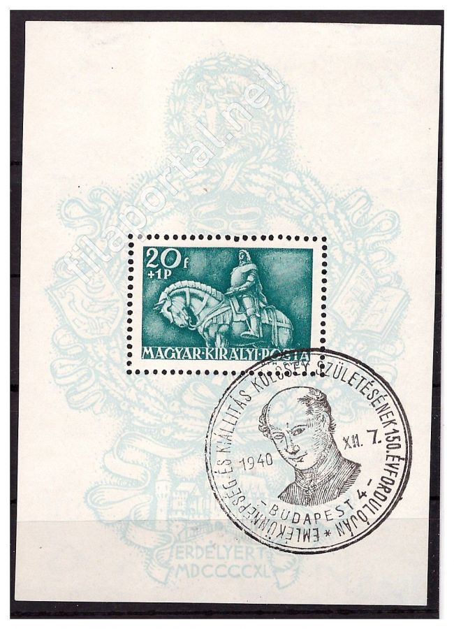 1940. MÁTYÁS BLOKK -o- 672, gyönyörű KÖLCSEY emlékbélyegzéssel (pbl)