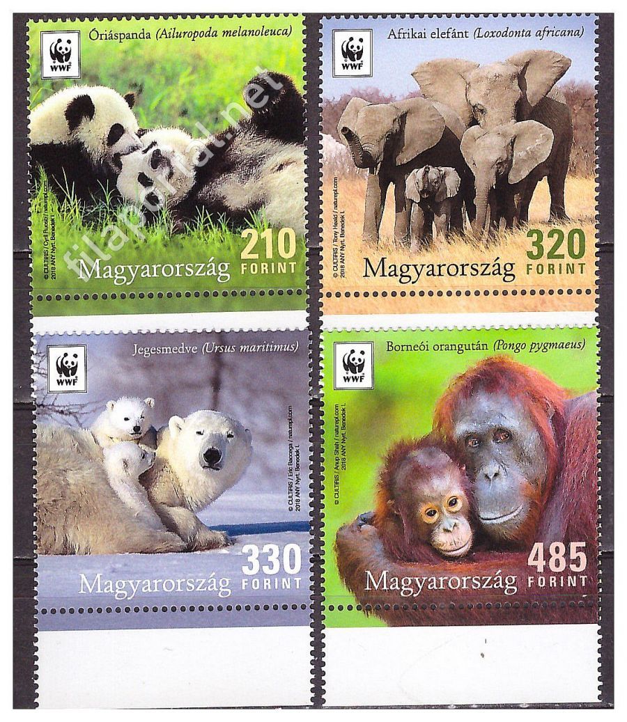 2018. VESZÉLYEZTETETT - VÉDETT ÁLLATOK WWF. sorozat 5364-67** alsó ívszélek, túlfutó bélyegkép, katalógusára 5.700 Ft