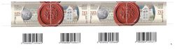 a vonalkódos csík középső 2 bélyege, fordított pár, túlnyúló bélyegkép 200 % felár, vonalkóddal, a kép illusztráció