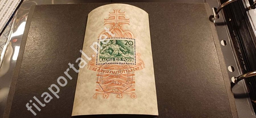 1940. ÁRVÍZ BLOKK 662 -o- MABOE nyolcszögletű kék bgző