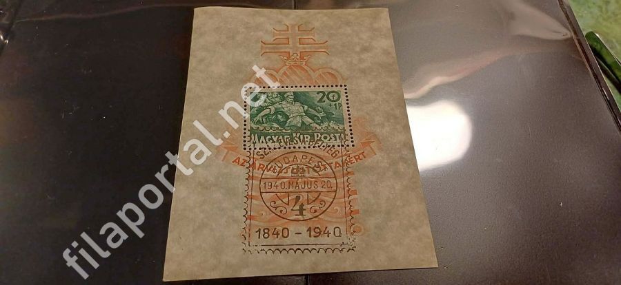 1940. ÁRVÍZ BLOKK 662 -o- "Százéves a bélyeg" fekete szögletes bgző