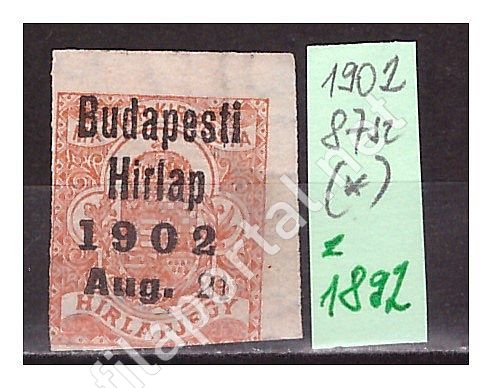 1909. HÍRLAP BÉLYEG - ELŐÉRTÉKTELENÍTVE - BUDAPESTI HÍRLAP 1902. Aug 21 (*) (z1892)
