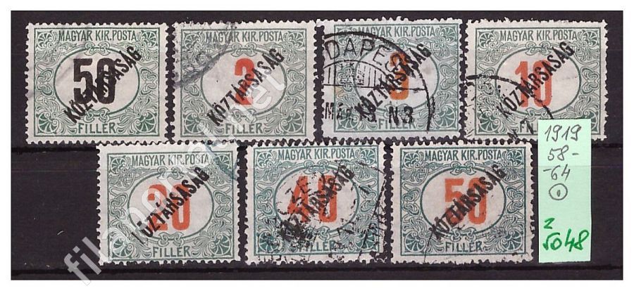 1919. KÖZTÁRSASÁG PORTÓ "FELÜLNYOMOTT" , KOMPLETT SOROZAT -o- 58-64 (z5048)