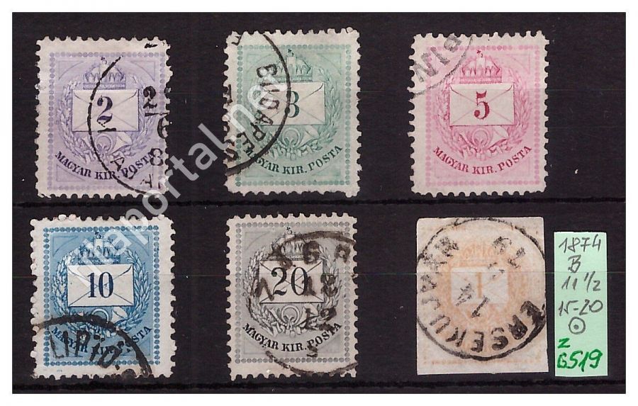 1874. SZÍNESSZÁMÚ KRAJCÁROS -B- 11 1/2 sorozat, hírlappal 15-20 (z6519f) berakólapon, katalógusára min 43.000 Ft