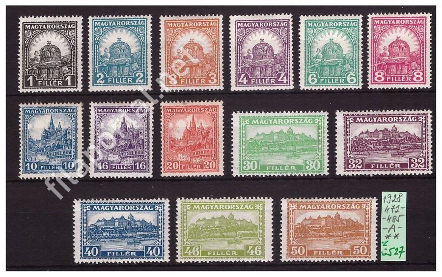 1928. PENGŐ FILLÉR II.**-A- SOROZAT 472-485 ritka (z6527f) berakólapon, kat.ára 22.000 Ft