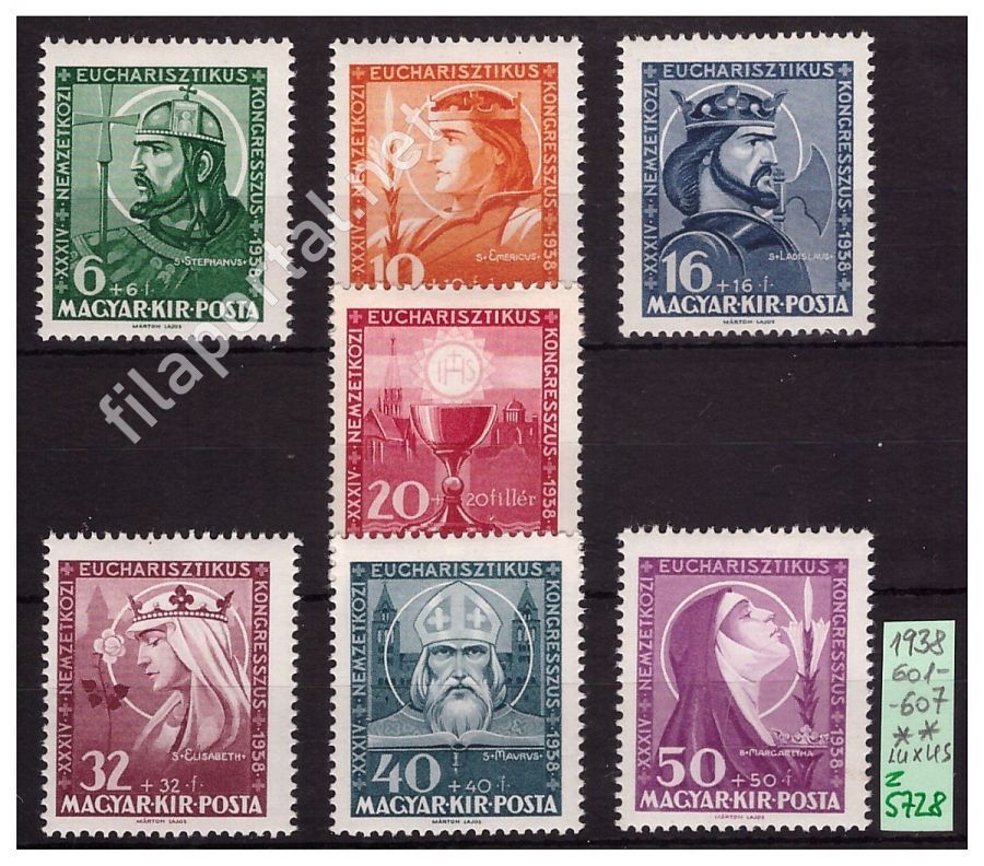 1938. EUCHARISZTIKUS blokk bélyegsorozata 601-607 ** luxus (z5728) berakólapon