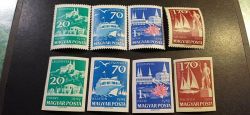 A vágottak szép falcmentes bélyegek, a támpéldányokon kis falc van. (a teljes sor vágottan kb 8.000 Ft lenne)