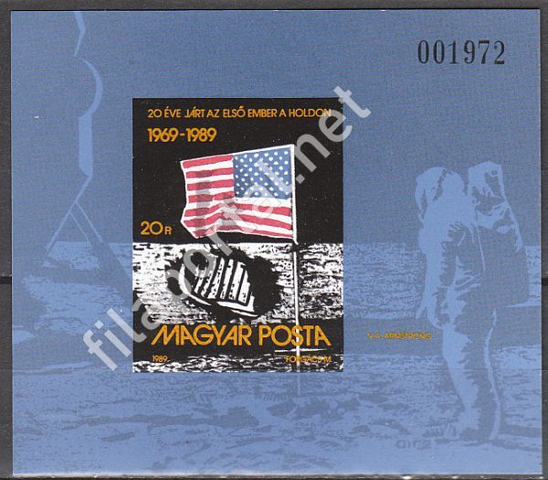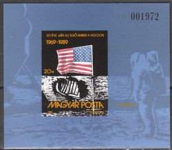 1989. 20 ÉVE JÁRT EMBER A HOLDON BLOKK ** 3983 vágott, katalógusára 4.000 Ft