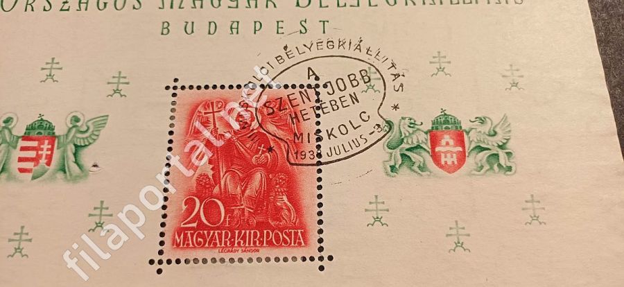 1938. ORBÉK BLOKK -ból bélyeg, különleges bgző ( az egész blokkot küldjük) (Szentjobb bgző) több kép (608szkr,sztjobb)