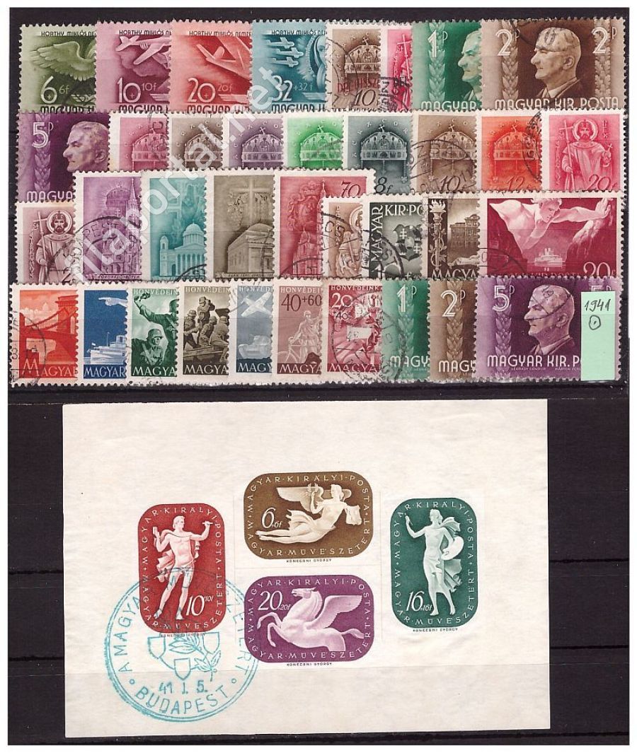 1941. KOMPLETT ÉVJÁRAT -O- berakólapon, (elsőnapi MŰVÉSZ blokkal együtt) katalógusára 7.200 Ft