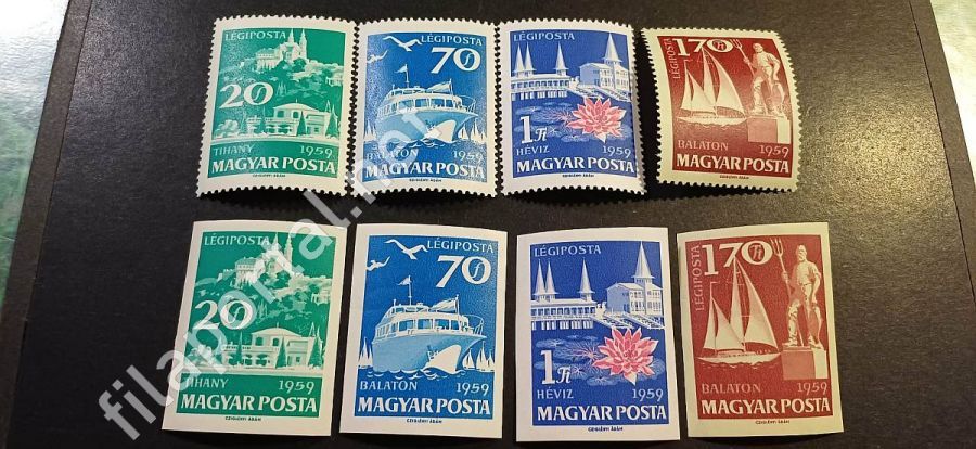 A vágottak szép falcmentes bélyegek, a támpéldányokon kis falc van. (a teljes sor vágottan kb 8.000 Ft lenne)